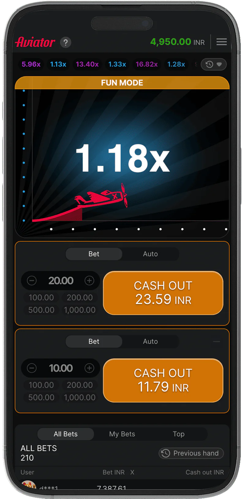 Playing 96in Aviator in the App
